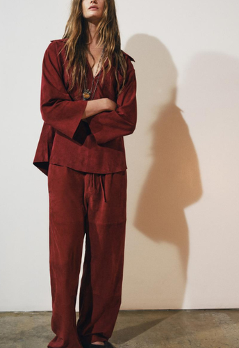 ZARA BNWT 2026. BURGUNDY LIMITED EDITION SUEDE LEATHER TROUSERS PANTS. 6098/913