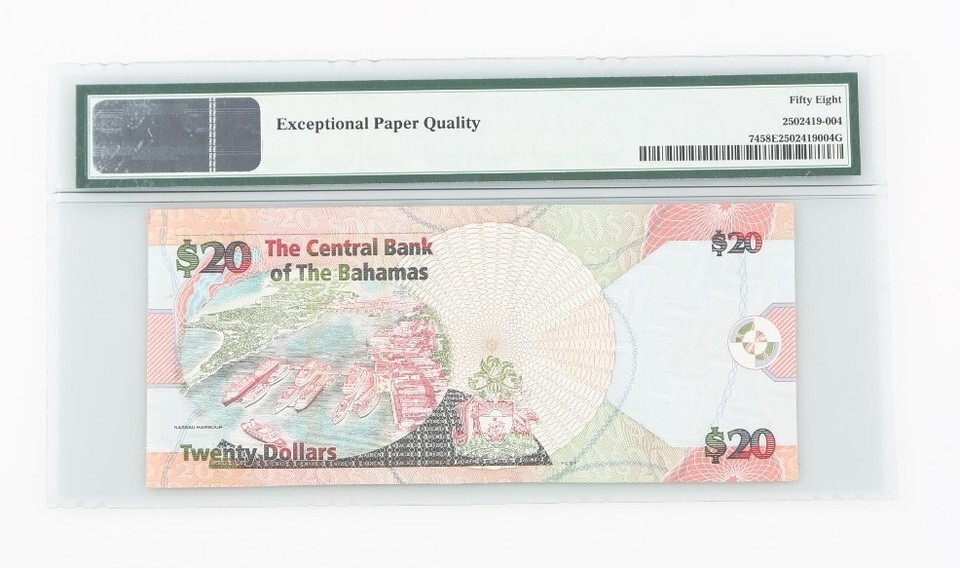 2006 Bahamas 20 Dollar Choice AU-58 EPQ Central Bank $20 About Uncirculated P#74