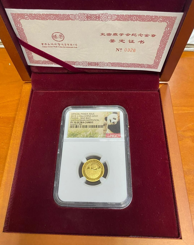 2015 China Gold 1/10 Oz. Panda Bao Bao Smithsonian NGC PF70 Ultra Cameo