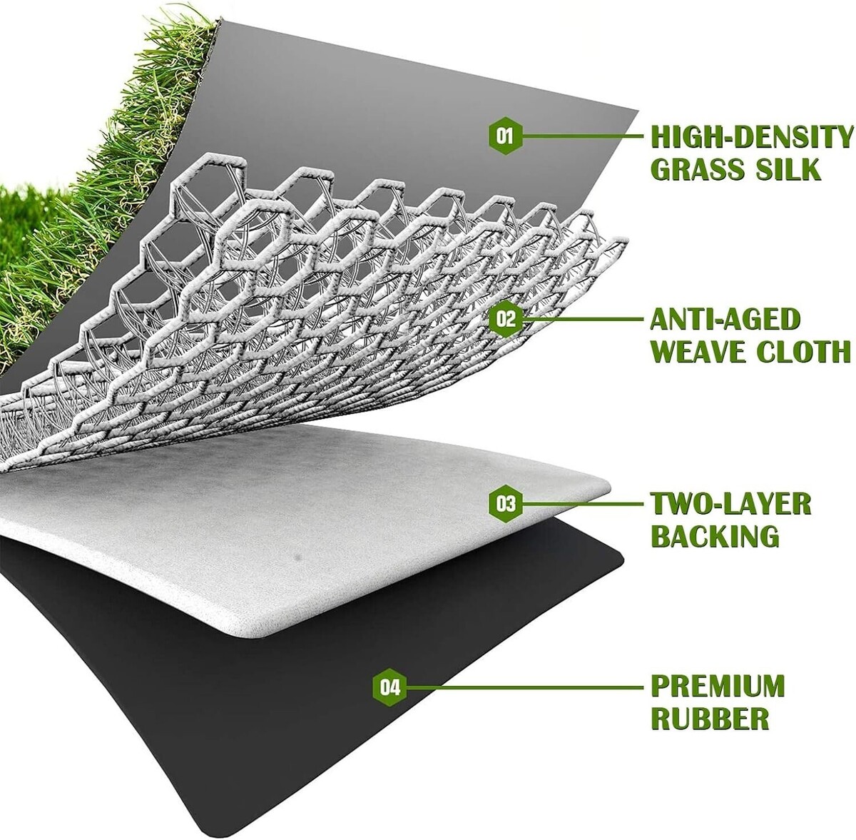 We offer high-quality gardening and lawn products by constantly improving our technology and innovations in the market. (Note: The artificial grass is made of plastic and may heat up in sunlight; the refraction of sunlight may melt the artificial turf; we would not recommend to play on the fake lawn when temperature is high.)