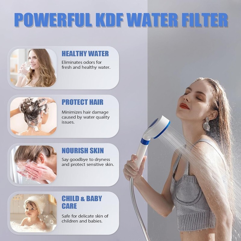 [20-STAGE FILTRATION] - The shower filter, equipped with KDF 55, Alkaline Ceramic Balls, Activated carbon, Calcium Sulfite and other filtering materials, ensures optimal water purification. Its 20-Stages filtration system can effectively reduce chlorine, fluoride, heavy metals and and other sediments.