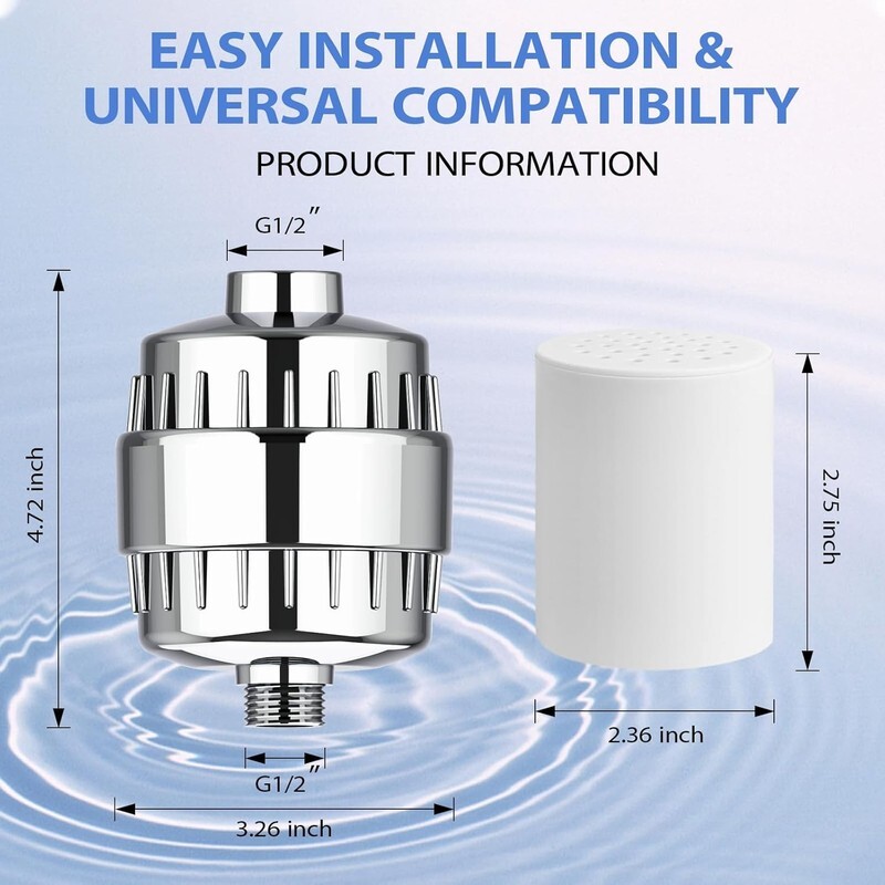 [UNIVERSAL COMPATIBILITY] - The shower water filter features a standard 1/2" thread type, making it universally compatible with a wide range of shower systems. It can be easily installed on wall-mounted, handheld, rainfall, and combo shower heads.