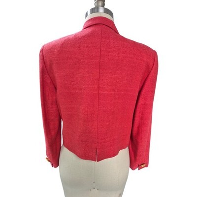 VTG 80s 90s Carlisle Silk Herringbone Cropped Coral Blazer Military Style Sz 12