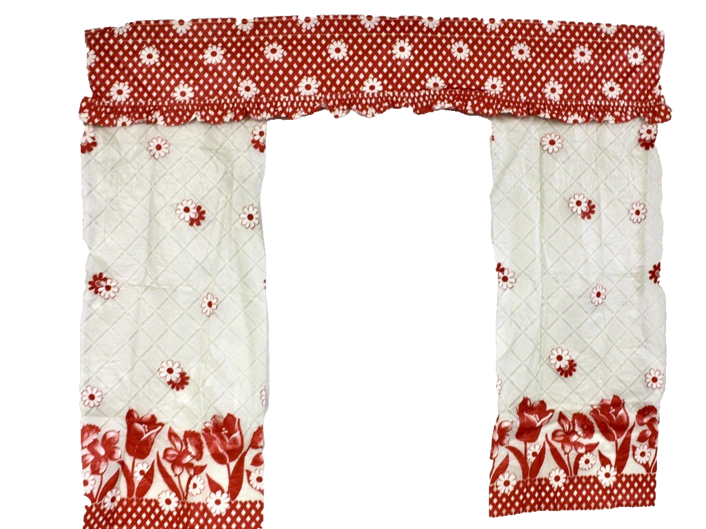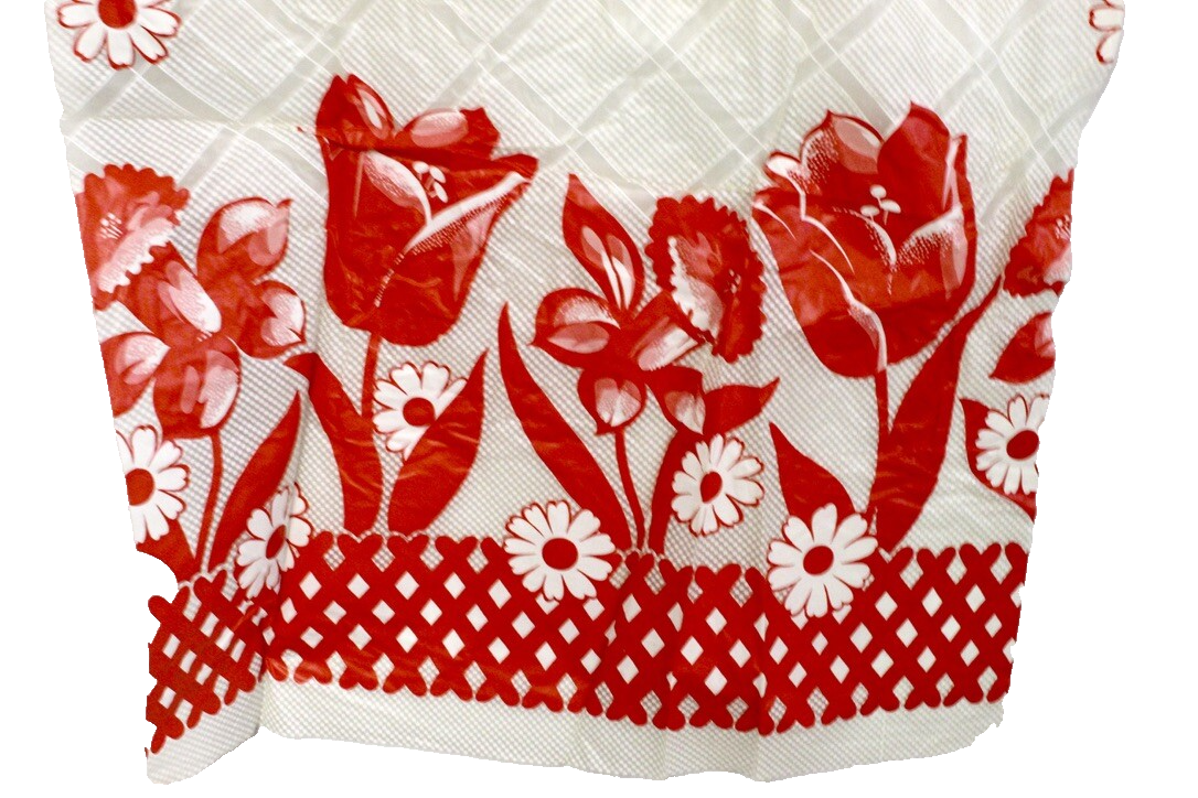 MCM Vtg 40s 50s Plastic Window Curtains Tulips Gingham Red White 50x44 Glamping