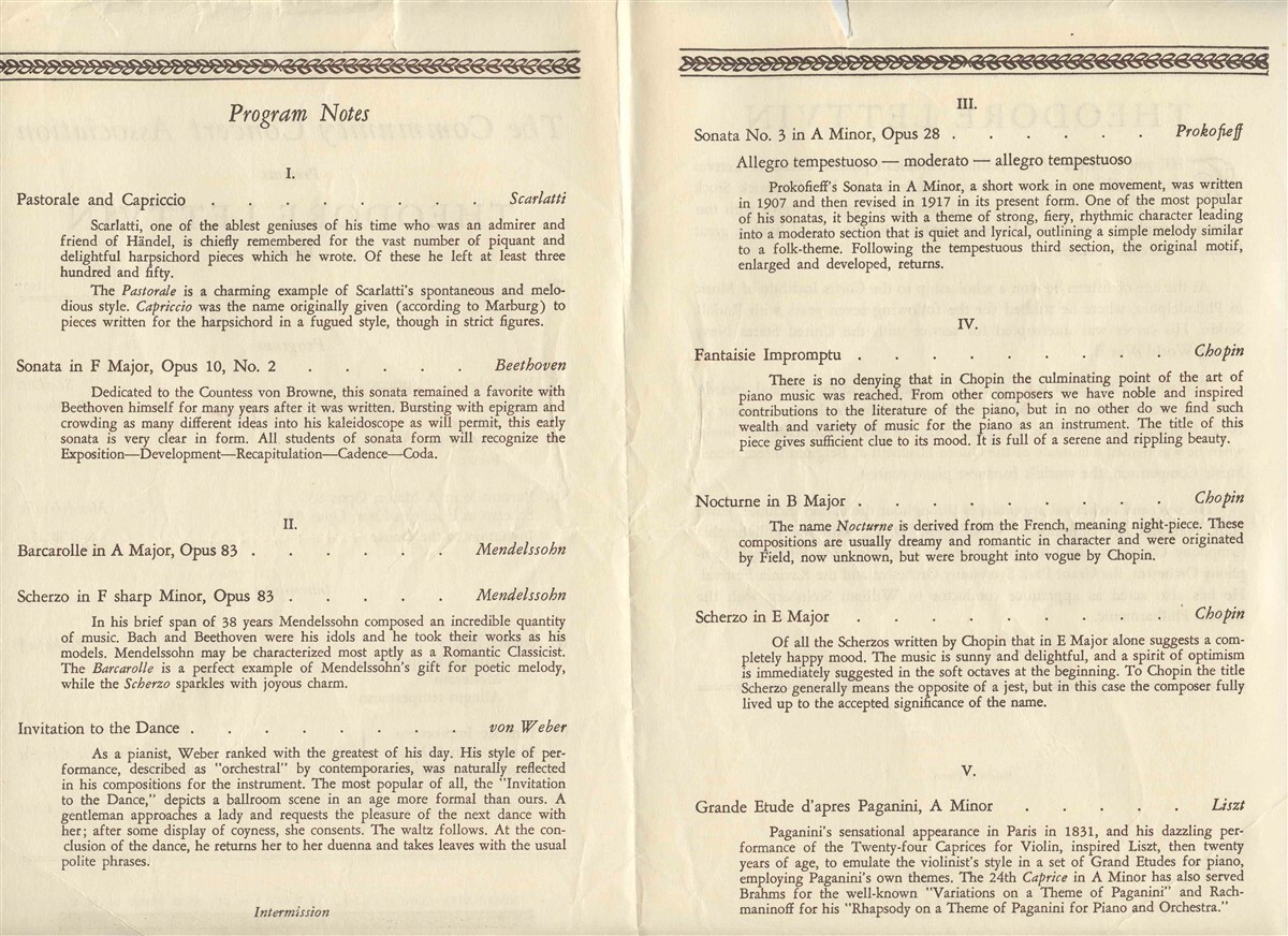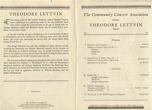 Theodore Lettvin Piano Concert Program Community Concerts 1954