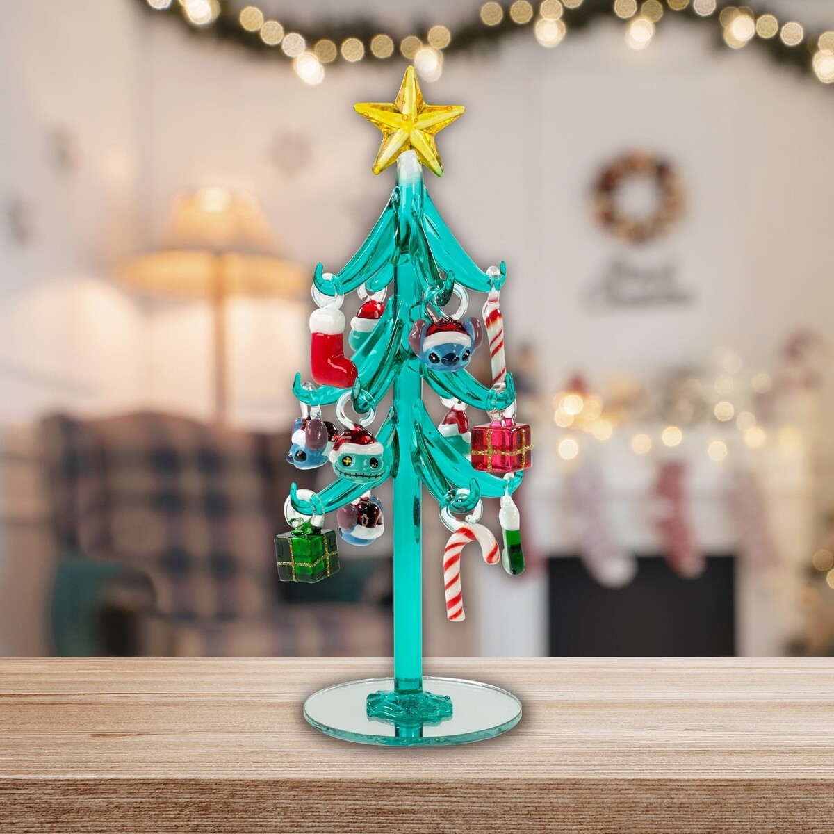 Charming Centerpiece: This delightful Stitch Glass Tree serves as a charming centerpiece for holiday decorations.