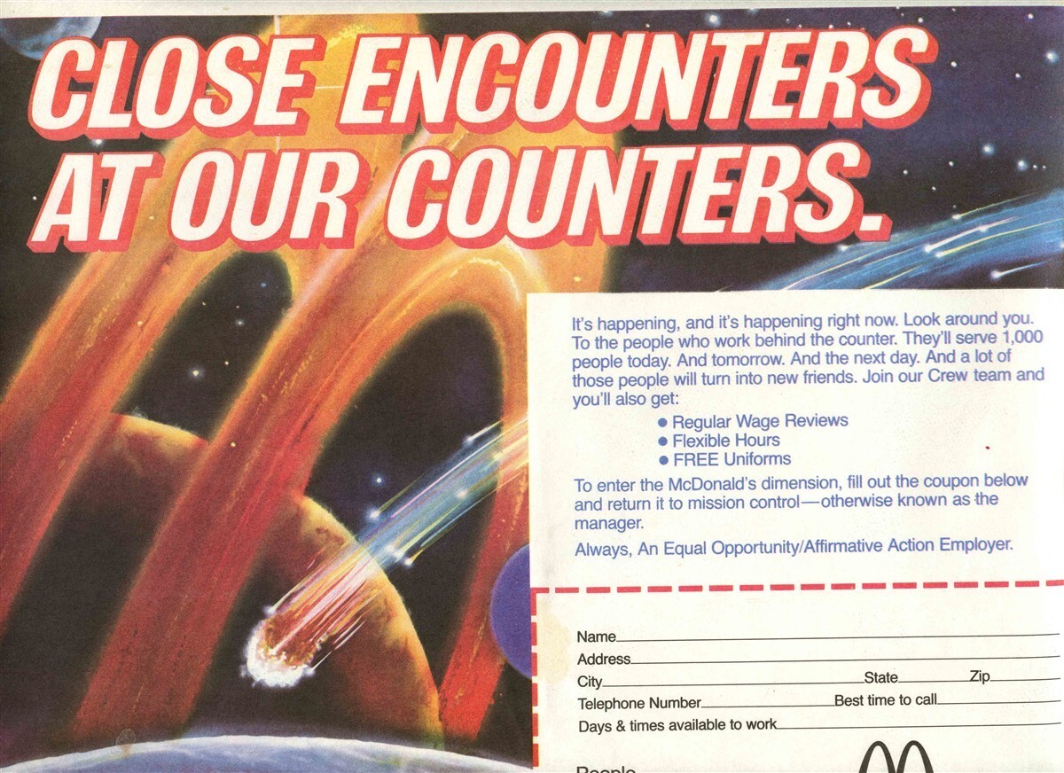 McDonald's Close Encounters at Our Counters Employment Placemat 1985