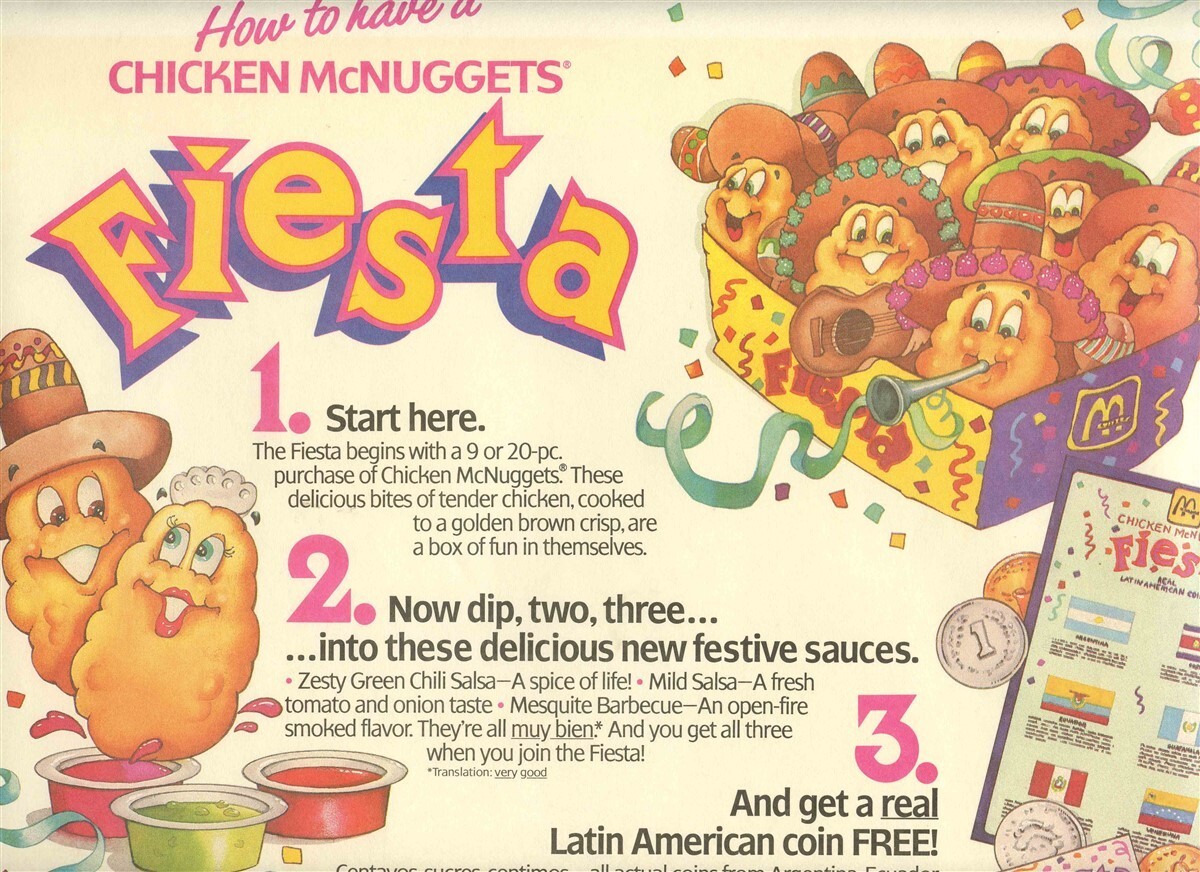 McDonald's Chicken McNuggets Fiesta Placemat 1988. Get a Fiesta Coin