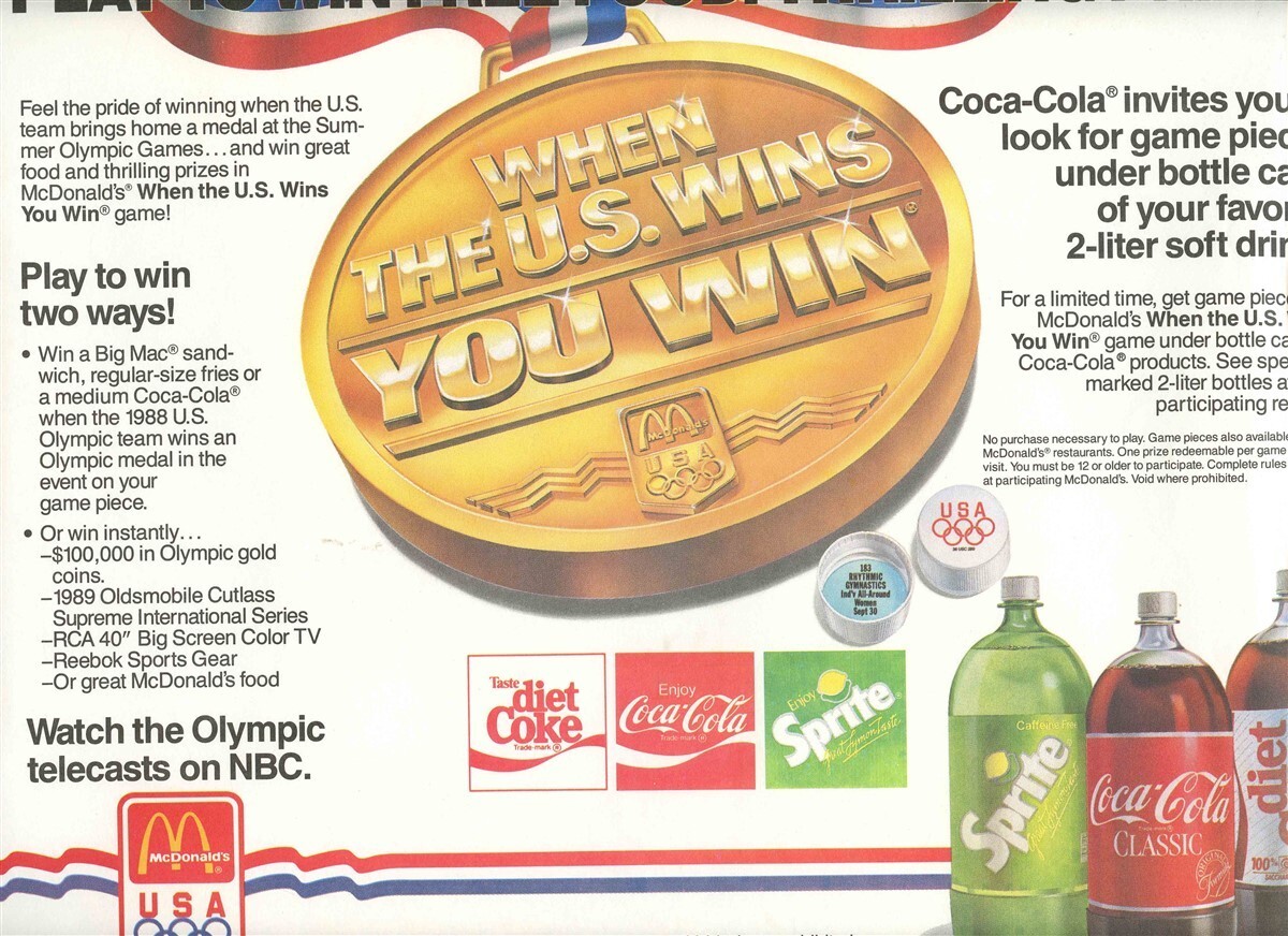 McDonald's 1988 US Wins You Win Olympics Placemat Coca Cola