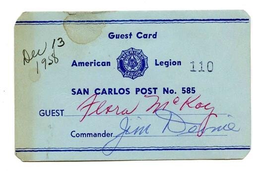 Guest Card San Carlos Post No 585 American Legion 1958