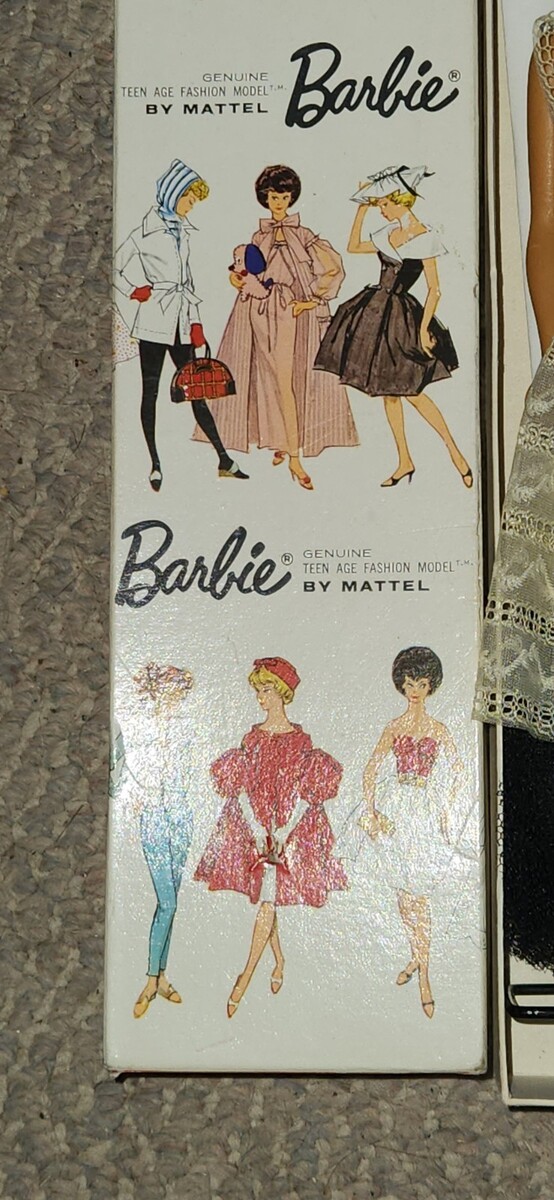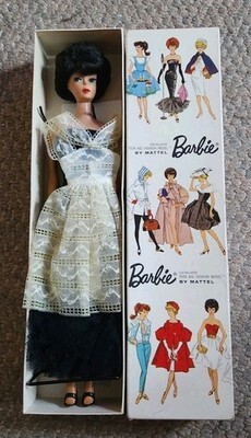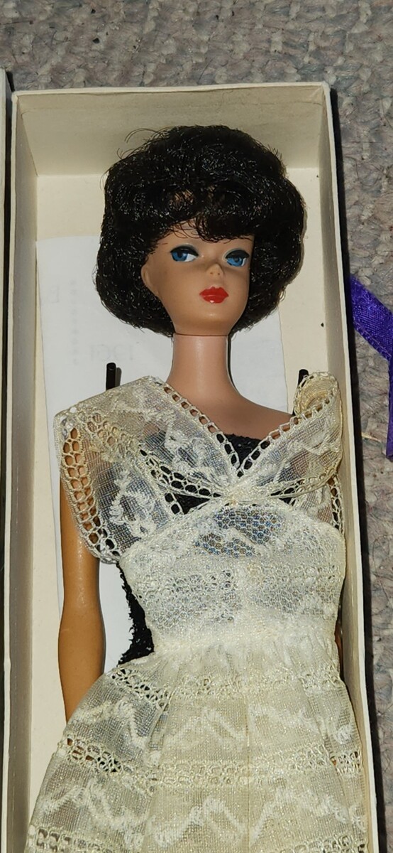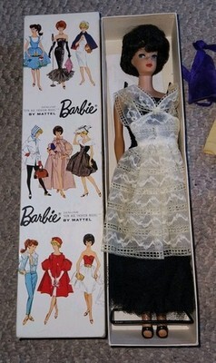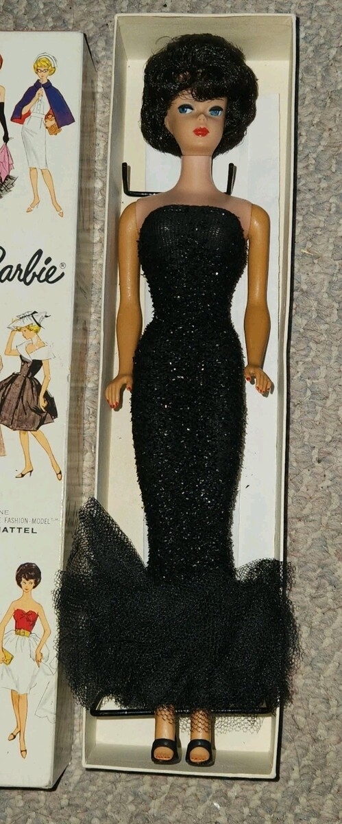 1960s Bubble Cut Barbie 850 Black Evening Gown Hair Original Box Extras Nice