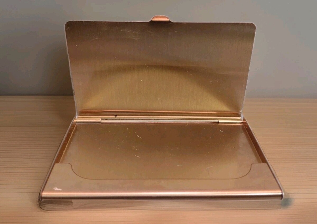 Made of durable brass, this business card holder is sure to last for years to come and keep your cards organized and easily accessible.