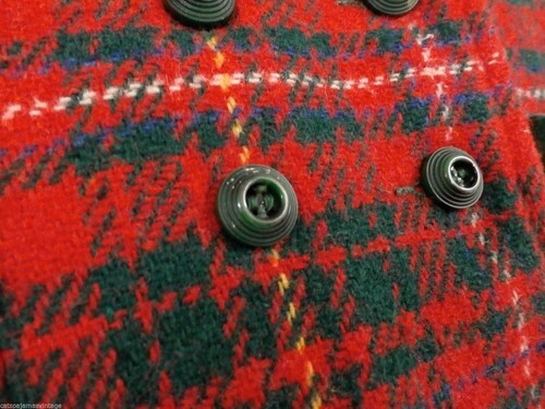 Fabric: Polyester/acrylic blend · Plaid in bright red + green · Velvet pants with flannel lining · Zipper leg openings · Matching bonnet · Cute Togs label