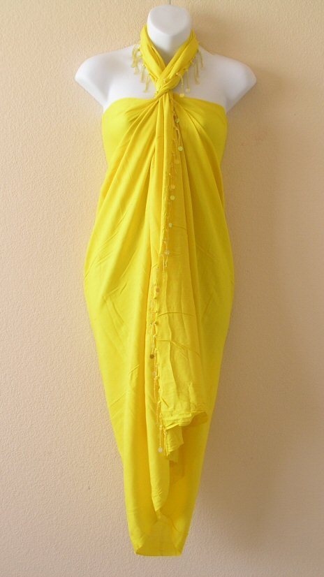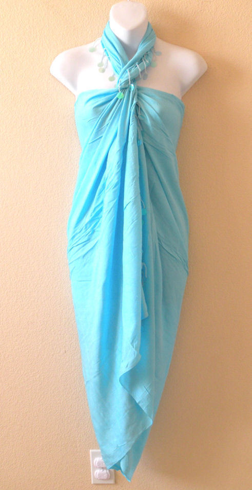 This sale is for one Beaded Wrap Around Sarong Pareo with hanging Beads with Molded Plastic Coins. This pareo has a unique hanging beads stitching design at both ends that results in a visually stunning pareo. Pareo are made from High Quality Rayon.