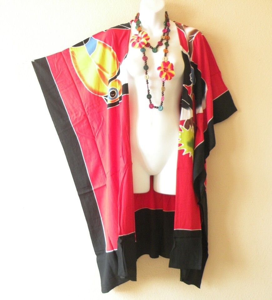 CM51 Toucan Kimono 38" Midi Cardigan Duster Kaftan Jacket Cover Top -up to 5X