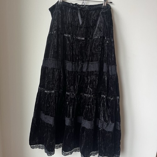 This skirt has a stretchable waist band along with 4 tiers in different colors made from wrinkled fabric.