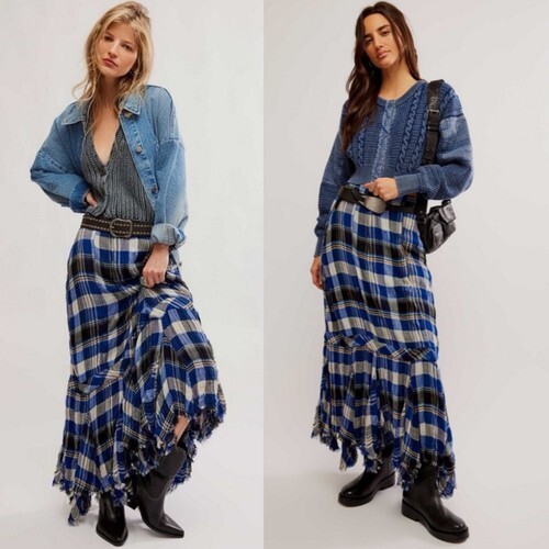TS10 Bohemian Women Tie & Dye Boho Hippie Gypsy 4 Tiered Patchwork Skirt