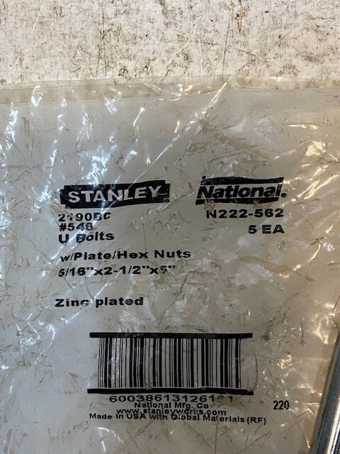 5 Quantity of STANLEY 2190BC U-Bolts w/ Plate & Hex Nuts (5 Quantity)