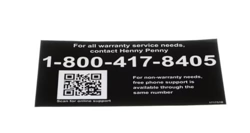 Fits Henny Penny 171751B Label/Decal, Warranty Service-Tech Support, US/Canada for LOV300, PQE-500