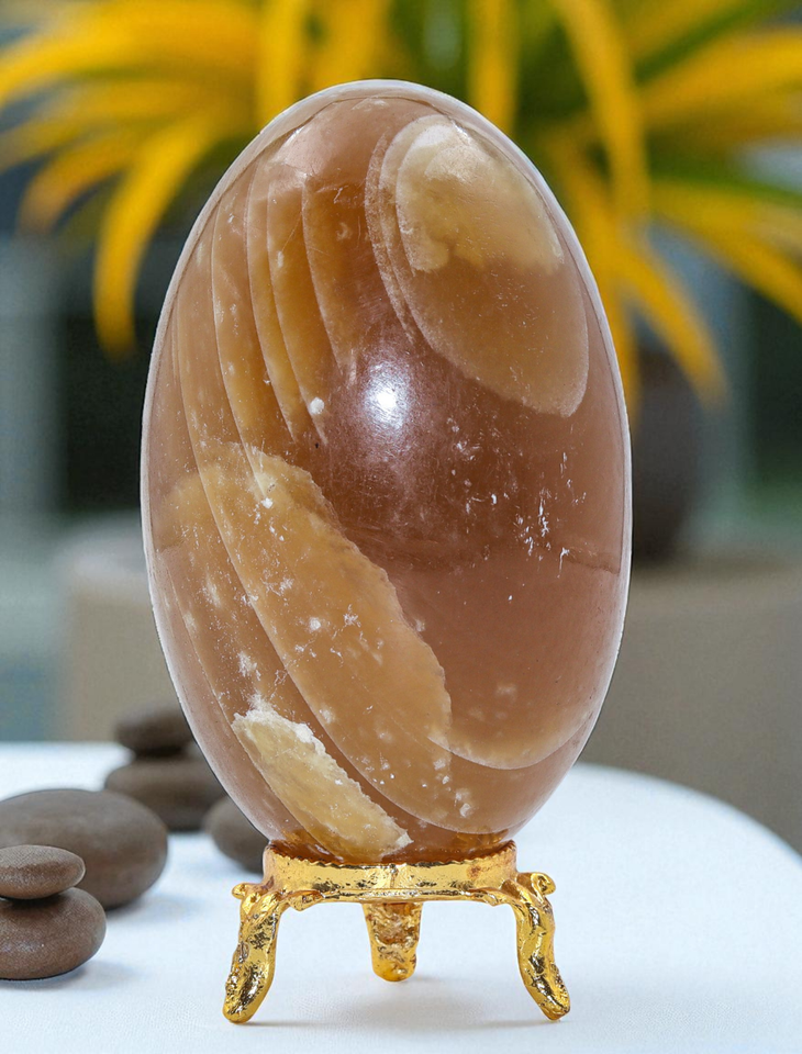 Yellow CALCITE Crystal Stone Healing Energy Gemstone Decor Lingam Gift 80mm