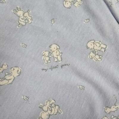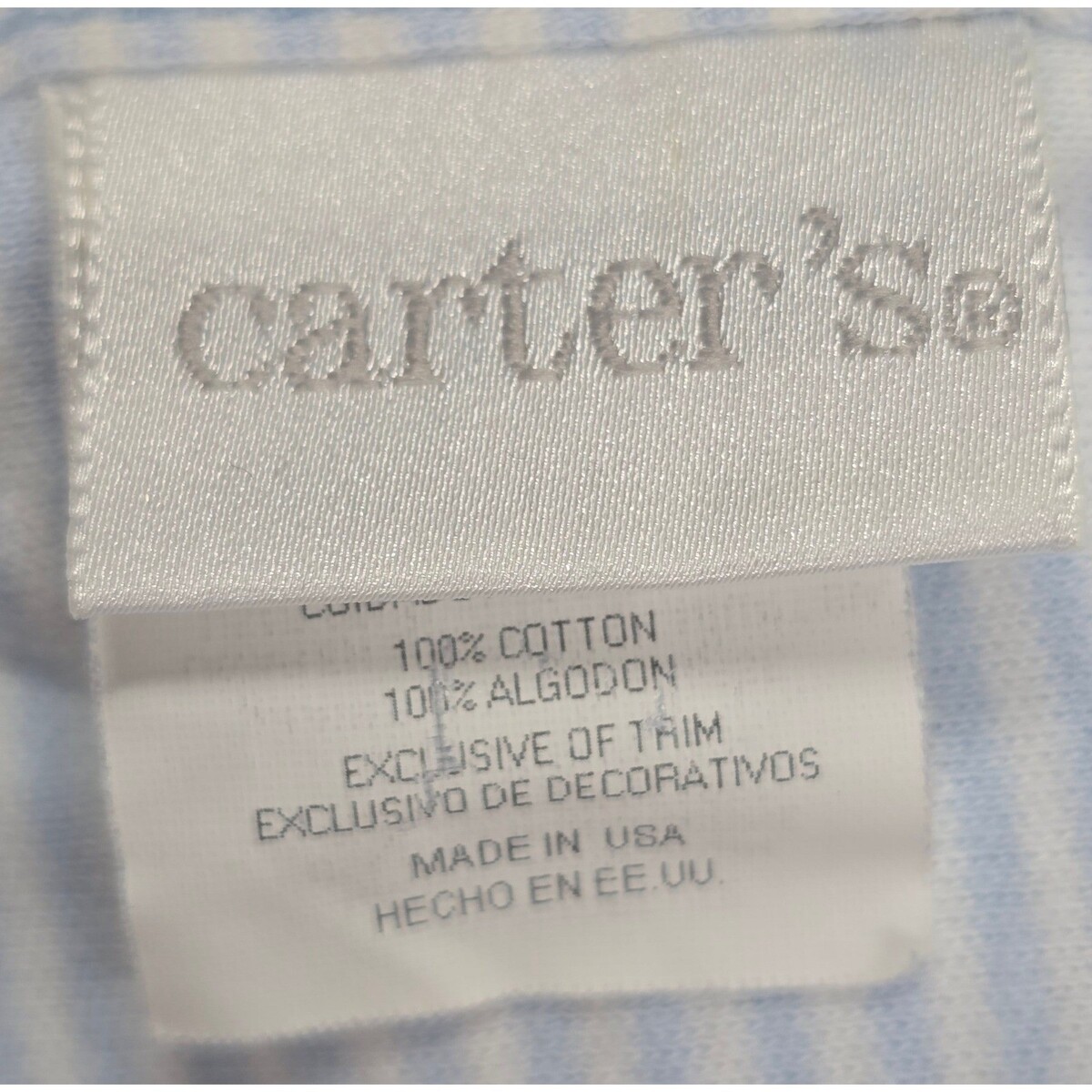 Carter's Baby Blanket Blue White Stripe Bunny Puppy My First Year Cotton USA