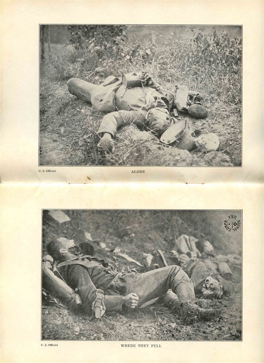 A 30 page card cover booklet with no publisher and no date.. Contains 30 black and white photos , many of them labeled US Official . Each has a Title. A few marked US Signal Corps. The Absolute Truth 30 Photo Booklet Atrocities of World War 1 . Circa 1918