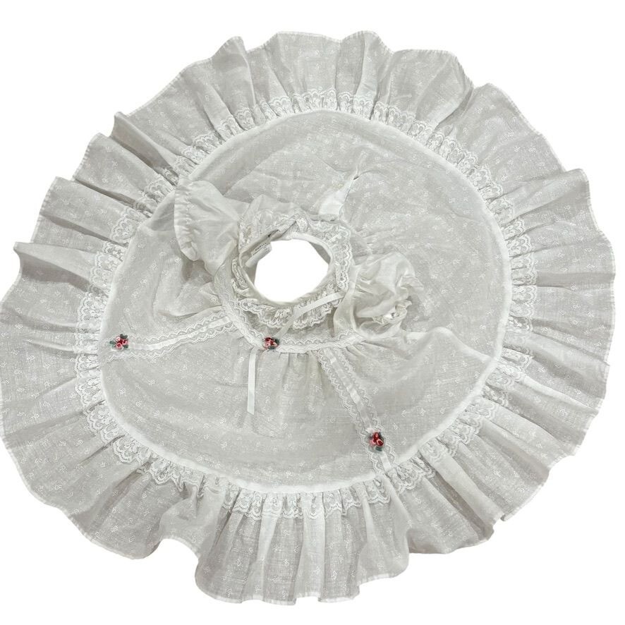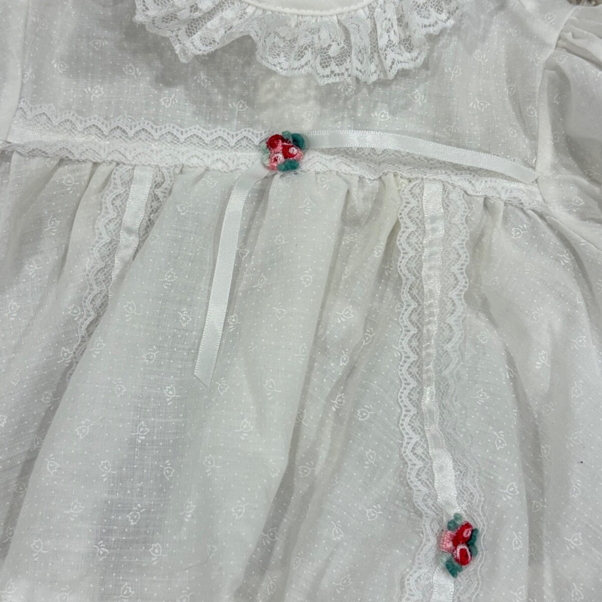 Vintage White Lace Baby Dress With Floral Accents & Ruffled Hem 9 Months