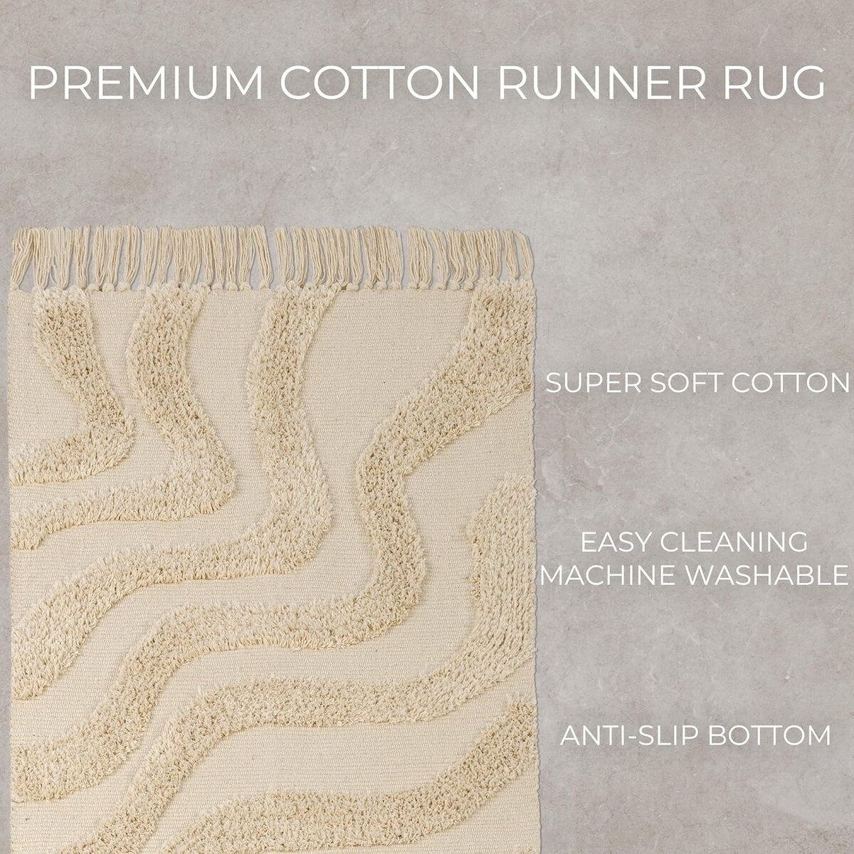 Soft Boho Bathroom Rug 2x3 ft with Tassels - Elegant Anti-Slip Cotton Mat