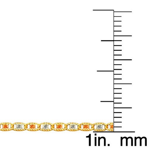 This exquisite Valentino chain with a star and rail diamond-cut design necklace is a stunning piece crafted from genuine 14k tri-tone (yellow, white, and rose gold) gold, radiating elegance and sophistication. With its decorated flat oval links, this chain beautifully catches the light, making it a perfect addition to elevate your casual wardrobe. You can choose from five lengths?16, 18, 20, 22 or 24 inches ?allowing you to find the ideal fit for any occasion. The graceful 2.1-mm width of the chain adds a subtle touch of distinction, while the lobster claw clasp ensures secure wear, allowing you to wear it with confidence. Whether layered with other necklaces for a trendy look or worn solo to let its beauty shine, this necklace seamlessly complements any outfit. The gold weight varies slightly based on the selected length, with approximate weights of 16 inches: 2.06 grams, 18 inches: 2.24 grams, 20 inches: 2.52 grams, 22 inches: 2.7 grams, 24 inches: 2.91 grams. Each piece is meticulously crafted, and while all measurements are approximate, they reflect the dedication to quality in every necklace. This is not just a necklace; it is a statement of style that transcends age and gender, suitable for both men and women who appreciate timeless elegance. Treat yourself or a loved one to a classic accessory that exudes charm and sophistication, perfect for any occasion. Treat yourself or a loved one to a classic accessory that exudes charm and sophistication, perfect for any occasion. *This product is not suitable for children under 14*