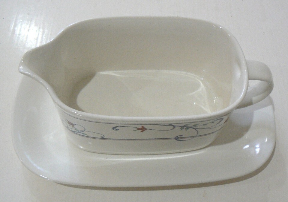 Mikassa Intaglio Annette Stoneware China Gravy Boat with Underplate