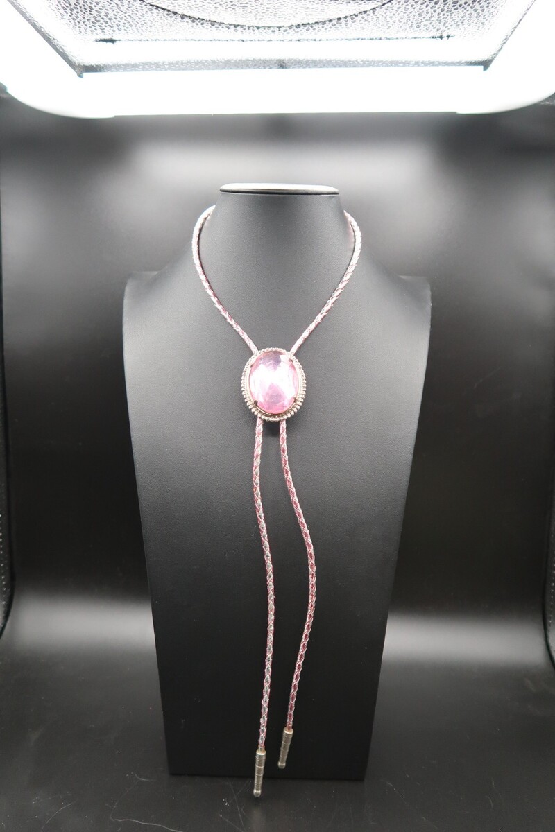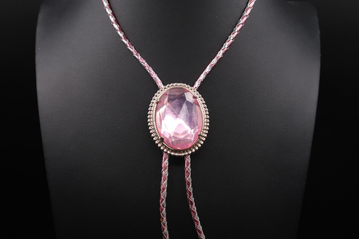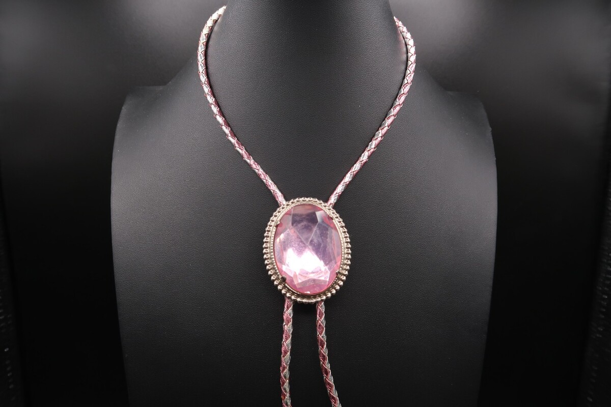 Bolo Tie W/ Pink Coated Cord & Faceted Slide and similar items