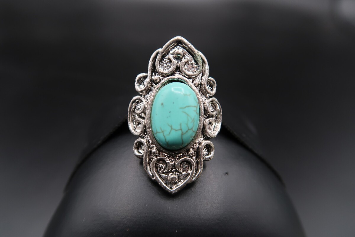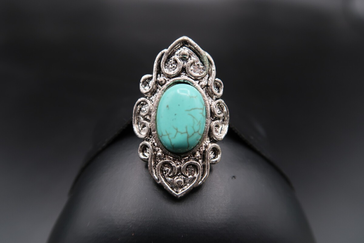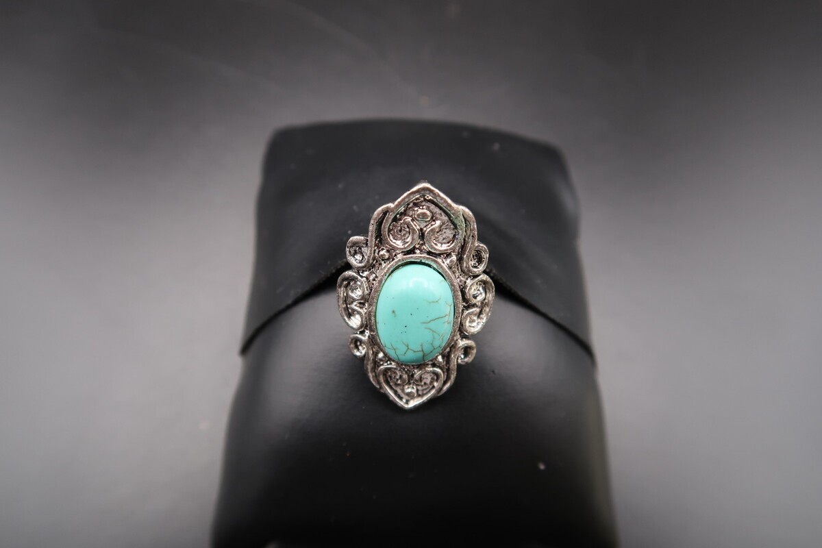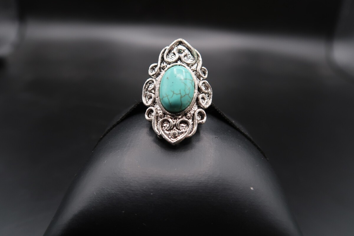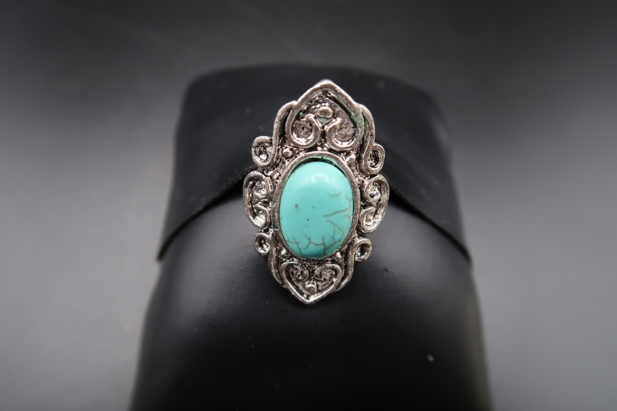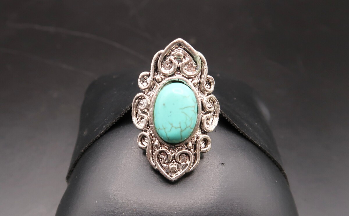 Vtg Silver Tone Southwestern Ring Turqouise OR Howlite Oval Cabachon Adjustable