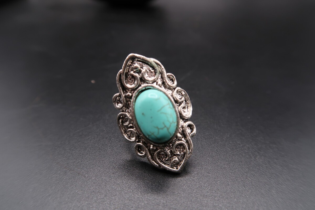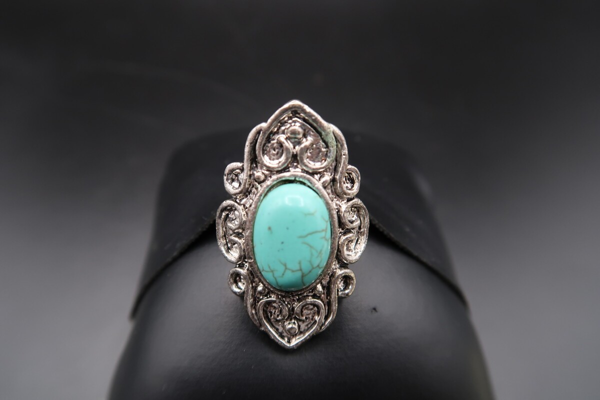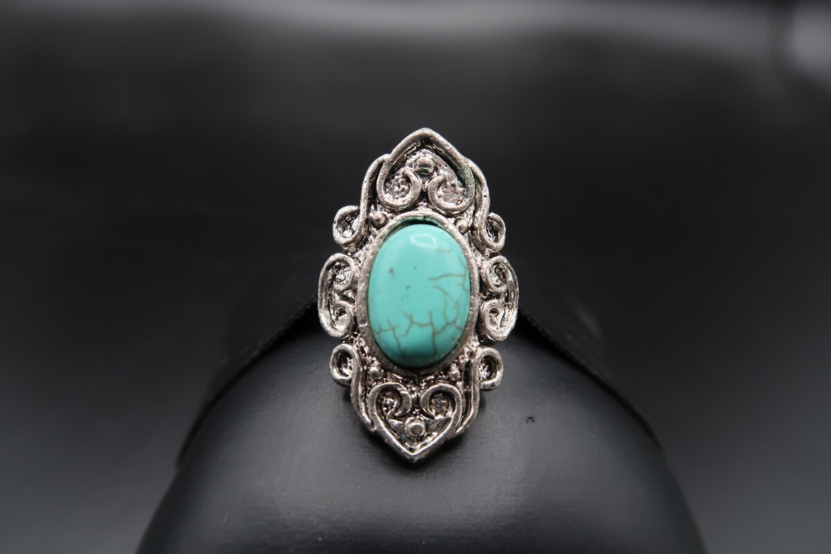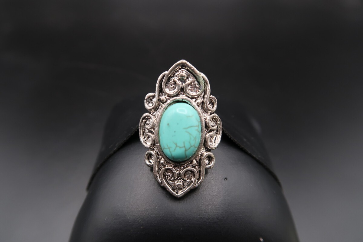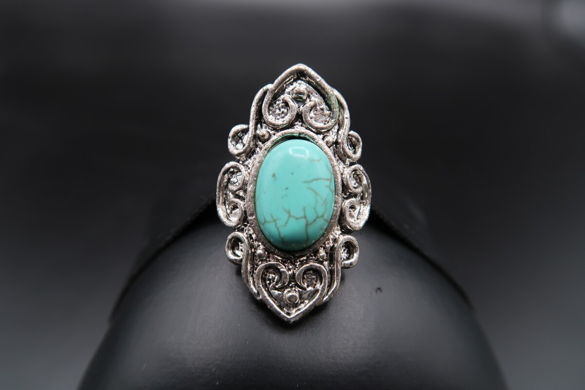 Vtg Silver Tone Southwestern Ring Turqouise OR Howlite Oval Cabachon Adjustable