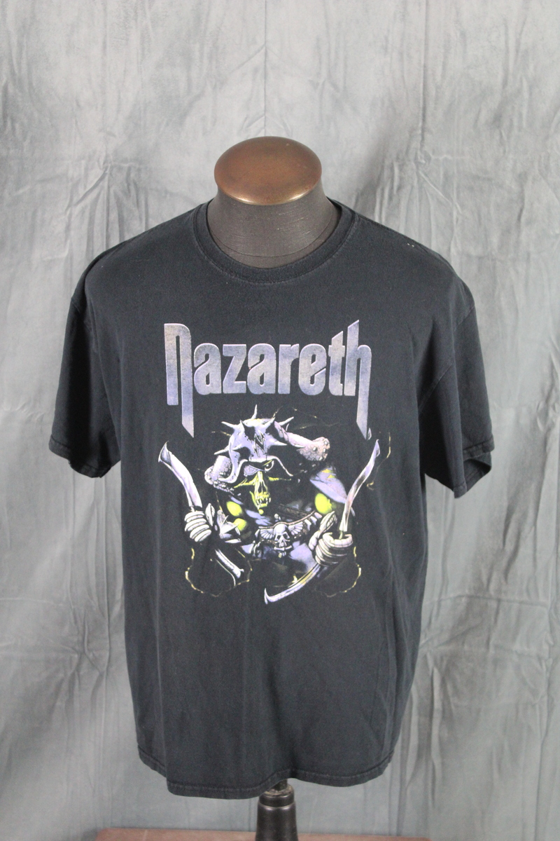 Up for sale is a retro Band Shirt. It has a black base colour with the Nazareth and an ogre graphic screened on the chest. The back of the shirt has I'm Gonna Go Down Fighting screened on the back. What a great shirt, do not miss out on it.