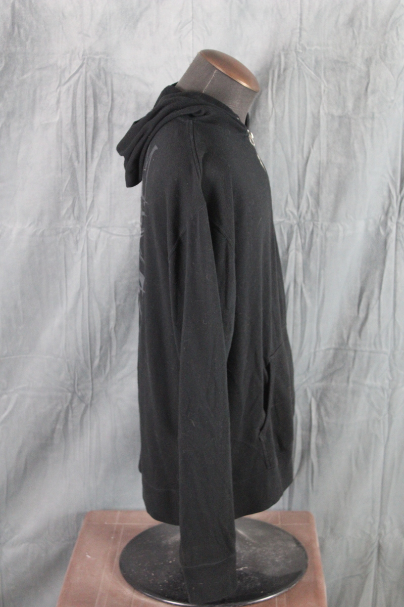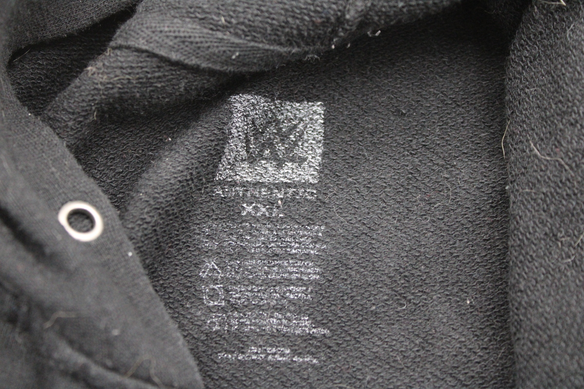 This hoodie is in good condition. This hoodie is missing the string inside the hoodie and the sizing information on the inside of the hoodie is worn. Please see the images for your reference.