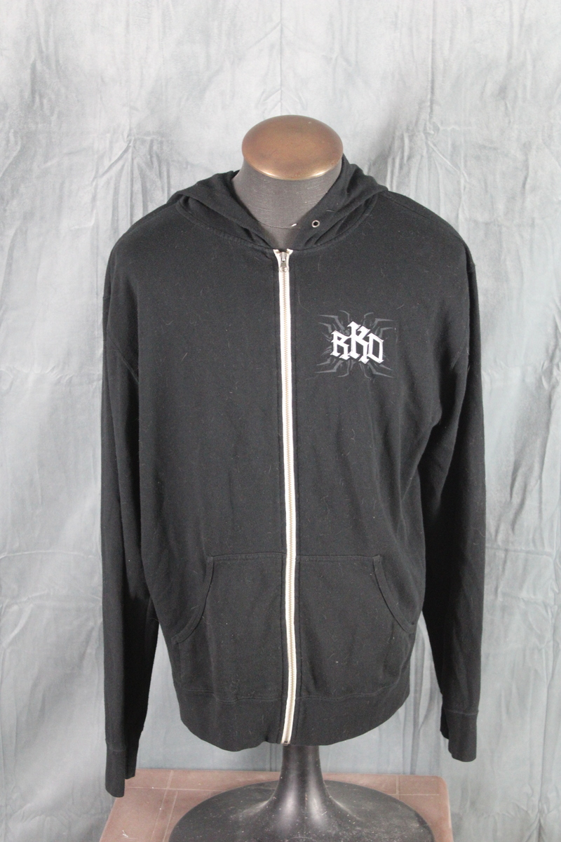 Up for sale is a WWE wrestling hoodie. It has a black base colour with RKO screened on the left side. The back of the hoodie has the viper skull logo with Venom in my Veins screened around it. What a great hoodie, do not miss out on it.