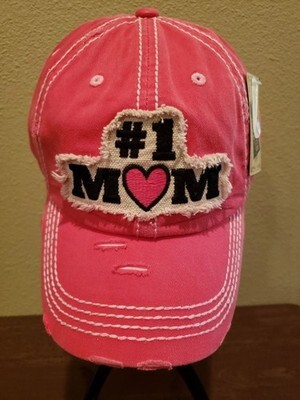 #1 Mom Embroidered Distressed Baseball Cap