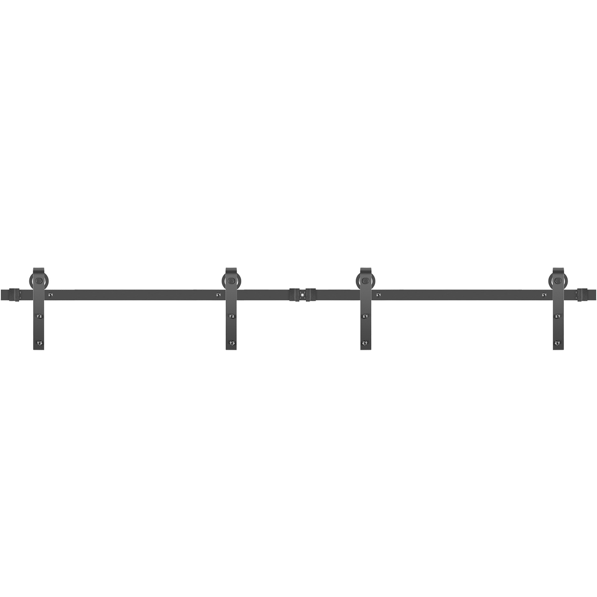 ? HEAVY CARBON STEEL ?- Double barn door hardware kit is a great design to slide your doors more smooth. The help of the kit can also be labor-saving and space-saving. It constructs with 0.24"/6 mm carbon steel and coated in a black power to nicely stay rust-free, abrasion-proof for long-term service.
