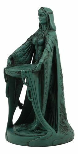 ? This Irish Triple Goddess Danu Statue is made of designer composite resin, hand painted and polished individually. Color tone may vary from pictures.