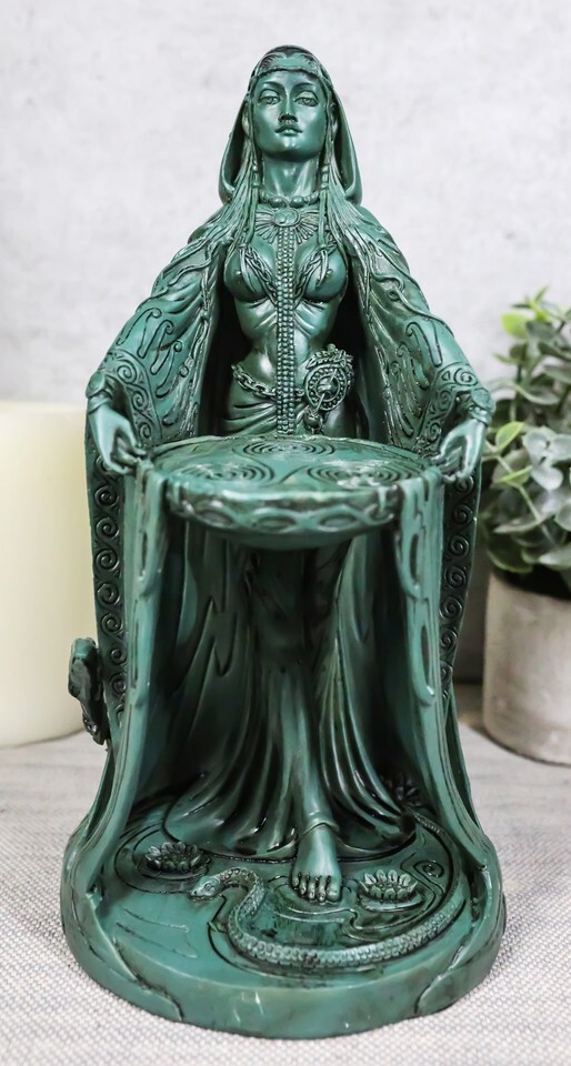 Irish Triple Goddess Danu With Cauldron Statue 9"H Don Source Of Wisdom Wealth