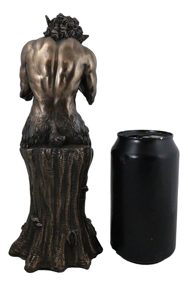 ? This Awesome Satyr Playing The Flute sculpture stands at 9.75" tall, 4"long, 4" Wide. The figurine weighs about 2 lbs 7 oz.