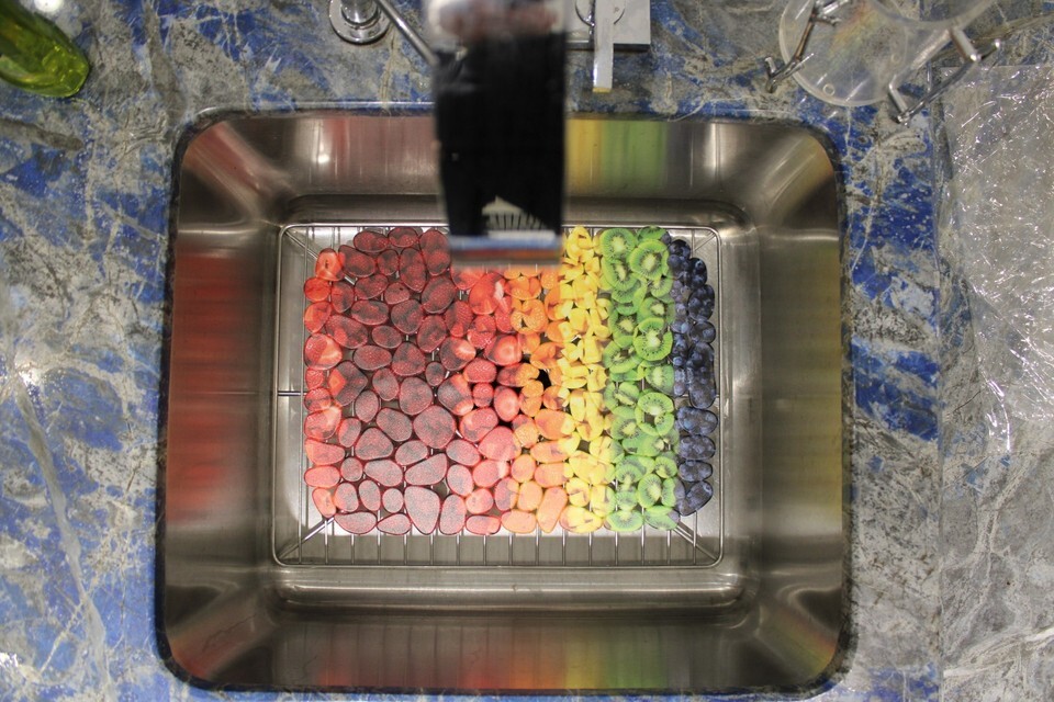 This decorative Fruit print adds a colorful, cheerful touch to stainless steel or porcelain sinks while reducing noise from dishes and running water. Perfect for everyday kitchen use.
