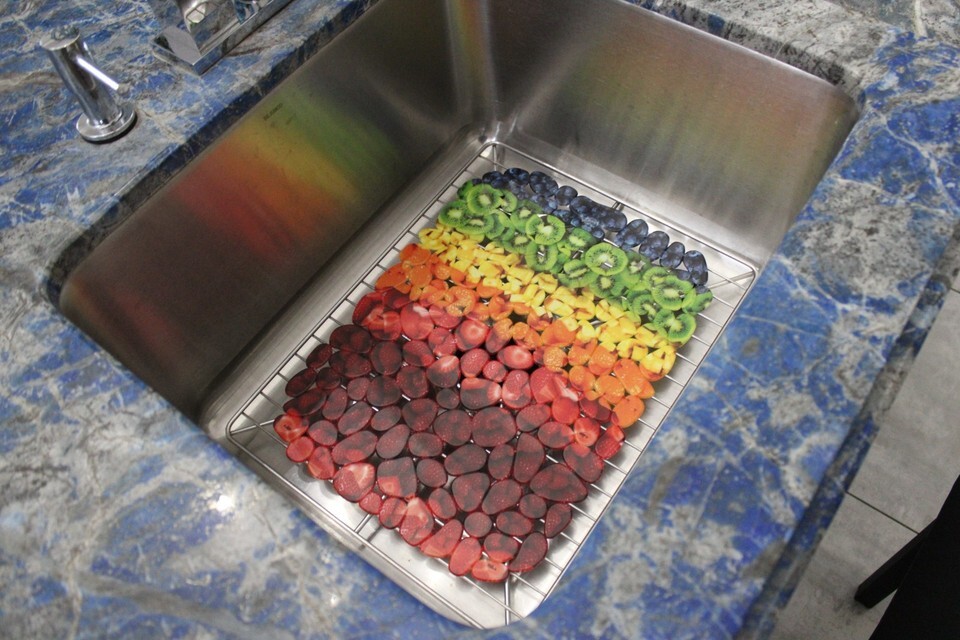 Printed PVC Sink Mat 15.7"x11.8" Flexible Pebble Sink Protector – Fruit