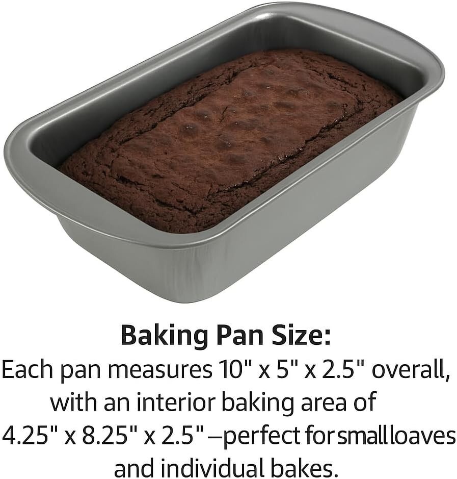 These pans are suitable for mini loaves, brownies, pound cakes, banana bread, carrot cake, and similar baked goods. The lightweight metal construction allows for quick heating while still being durable for regular kitchen use.
