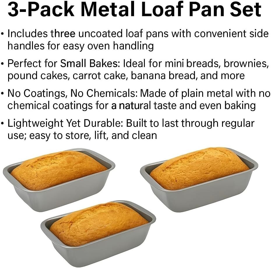 3 Pack Small Loaf Pans with Handles Metal Baking Pans Mini Bread Brownies