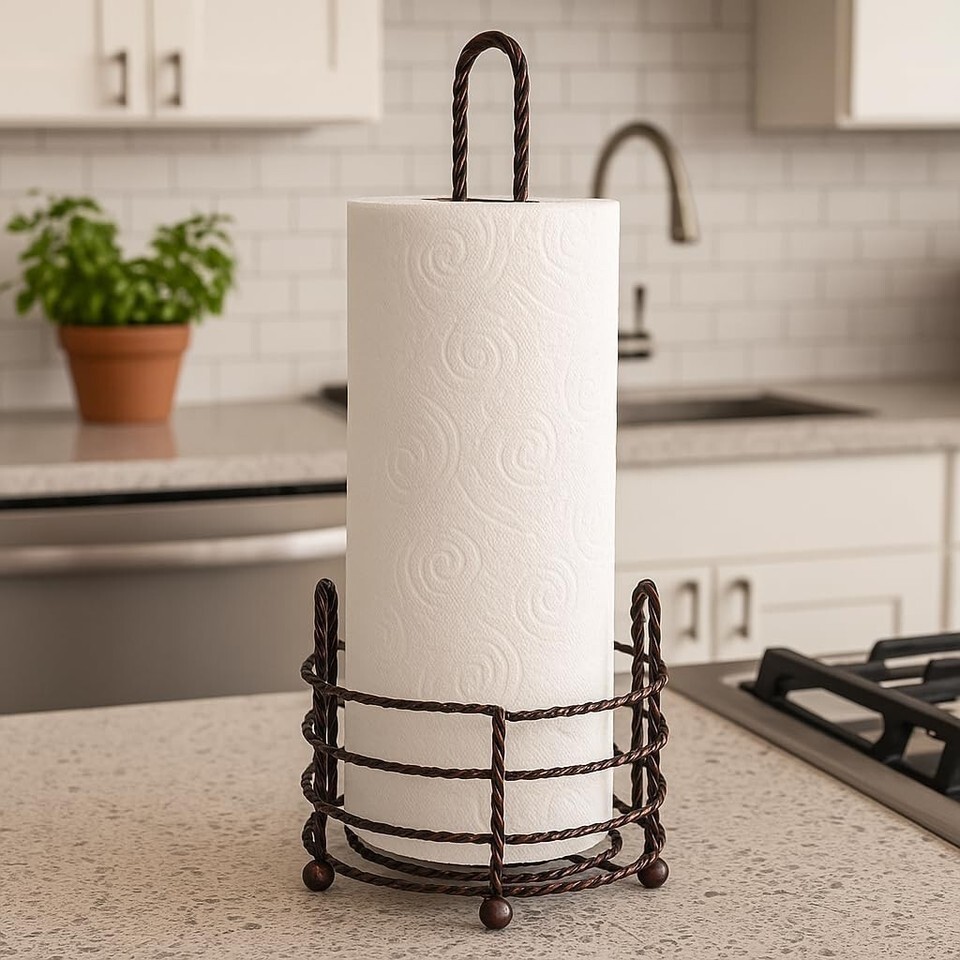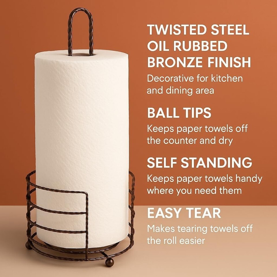 Paper Towel Holder Countertop Stand Oil Rubbed Bronze Twisted Steel Freestanding