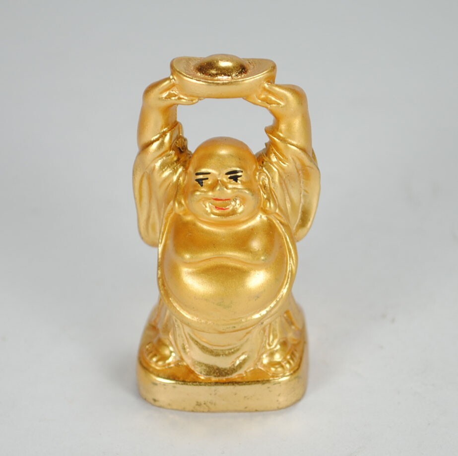 Set Of 6 Golden Happy Buddha Statues 2" Gold and similar items
