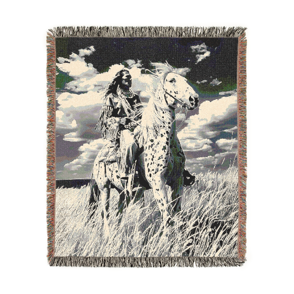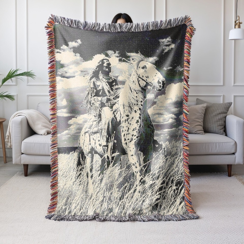 Proud Native American Woven Blanket Throw Tapestry Indian Horse Tribal Decor