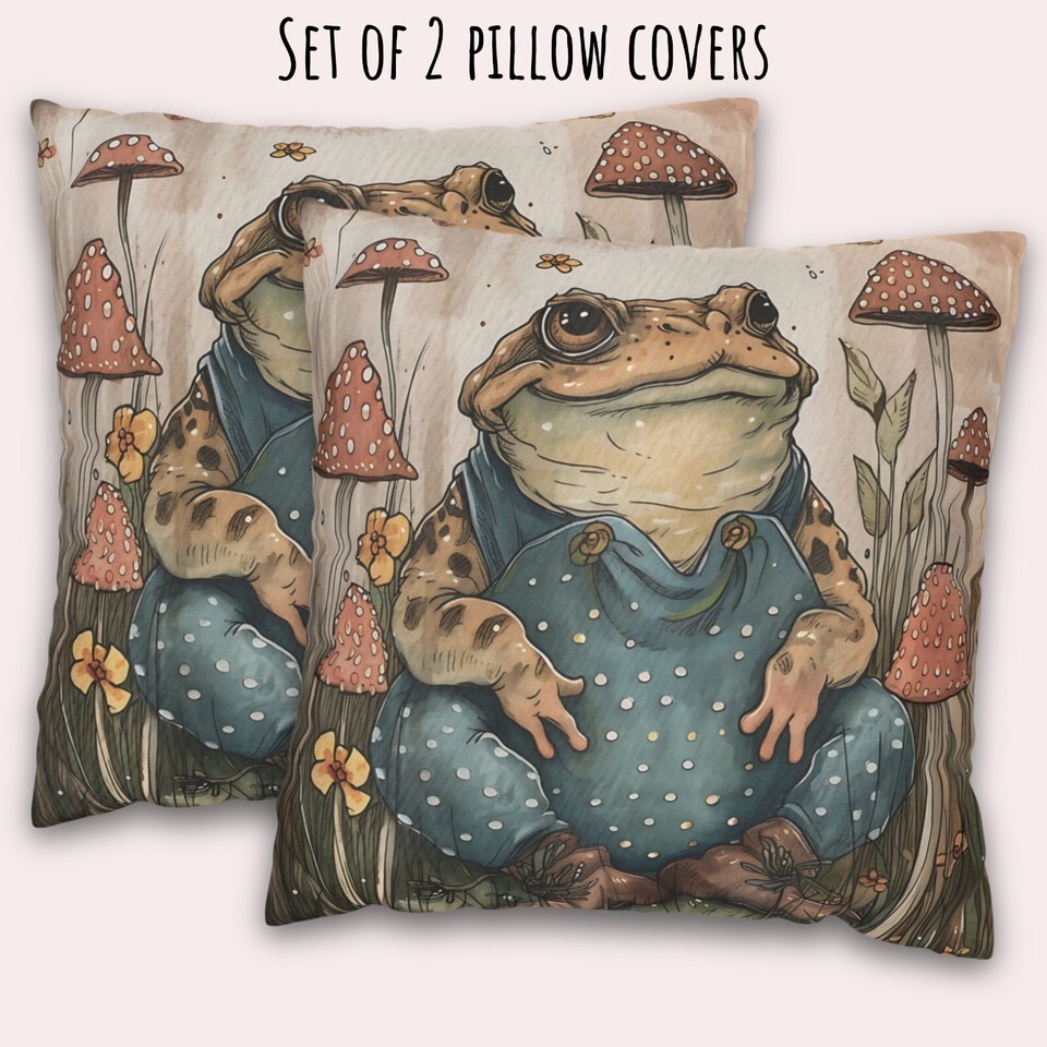 Cottagecore Toad Throw Pillow Covers Vintage Art Home Decor 18X18 Inch Set of 2