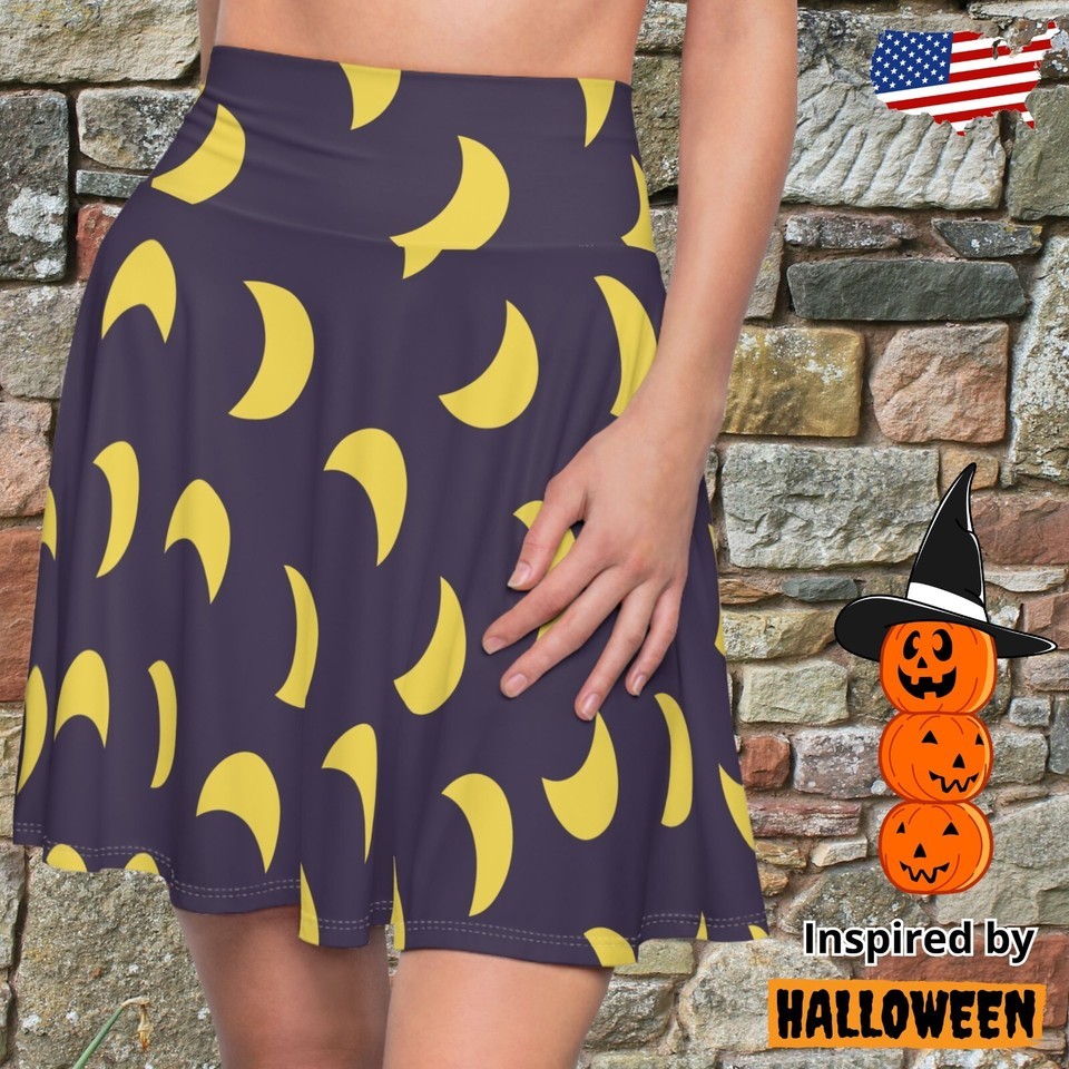 Women's Skater Skirt Pattern Halloween Inspiered Clothing Cosplay Purple Moon
